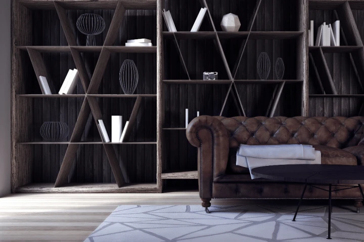 Who says shelves have to be perfectly horizontal to look amazing? Break the rules and create a luxurious built-in bookshelf with angles or curves intended to draw attention. When people walk into the room, it will be the first thing they notice. This is such an effective conversation-starter if you’re hosting guests. A bookshelf with angled shelves can make a fashionable statement with a dramatic dark paint color and metallic trim. This is a great option if you are tired of neutrals and want to add a pop of color without using bright red or yellow tints.
