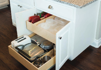 Our Designer line of kitchen cabinet Pull-Out shelves is made of natural, furniture-grade hardwood with dovetail joinery or melamine bottom face and hand-crafted here in North America. Choose from different wood types like Baltic Birch, maple, beech, and walnut hardwoods to customize the look. The UV-cured coating gives a finished glossy look and extra protection that ensures your custom Pull-Outs look as good in 20 years as the day they were initially installed.